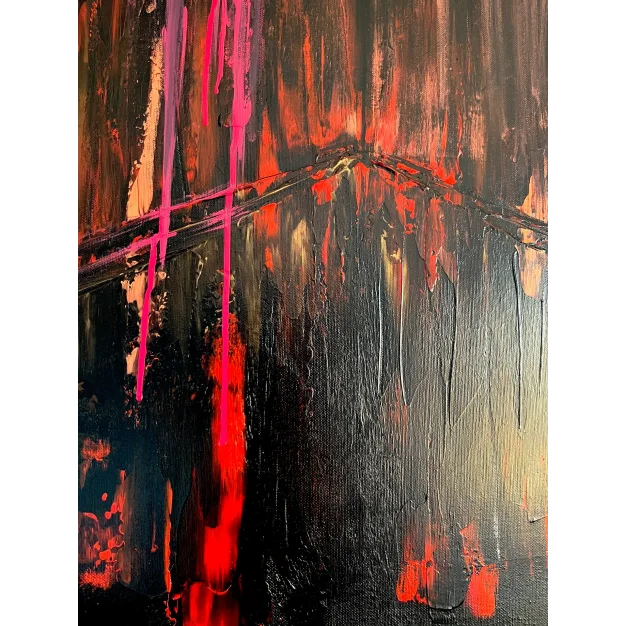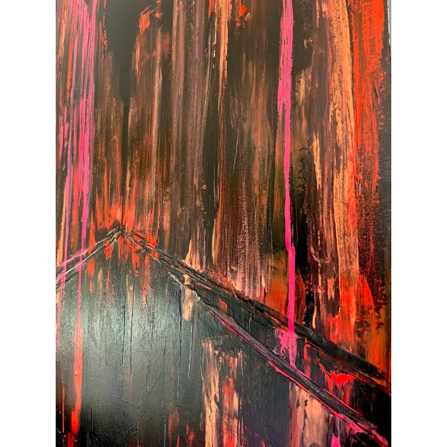 The work is sized for a stretcher frame of 60 × 90 cm, with a thickness of 2 cm. It is sold unframed, rolled up in a cardboard tube. The shipment will be insured. To receive the piece already mounted on a stretcher, a personalized quote can be requested by contacting the artist directly.