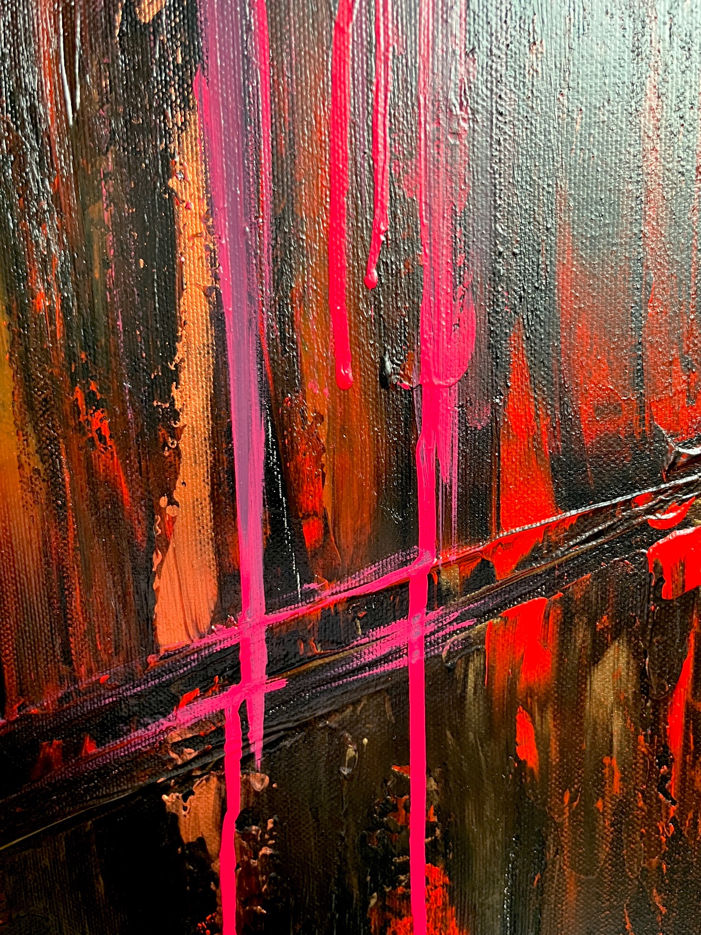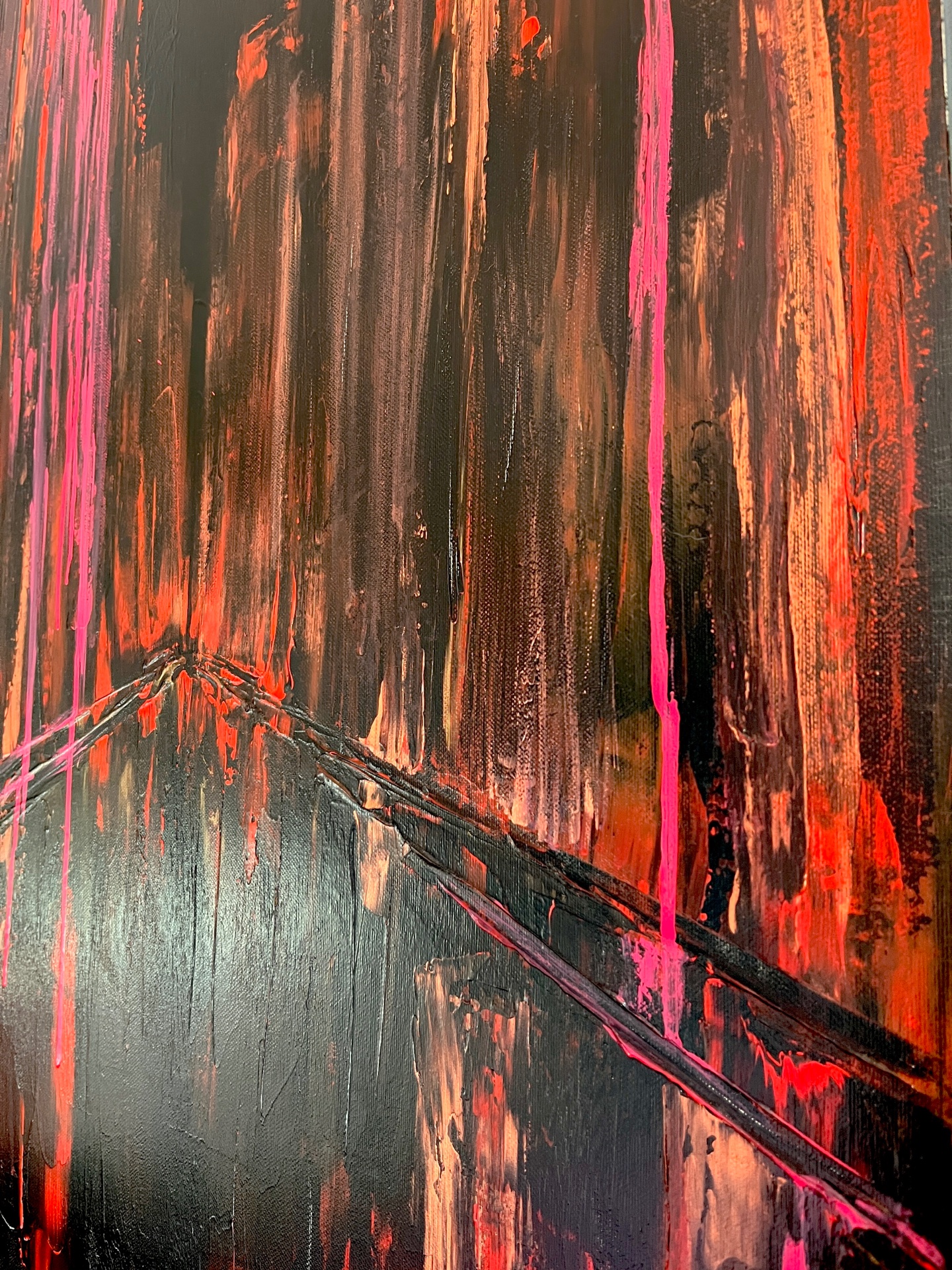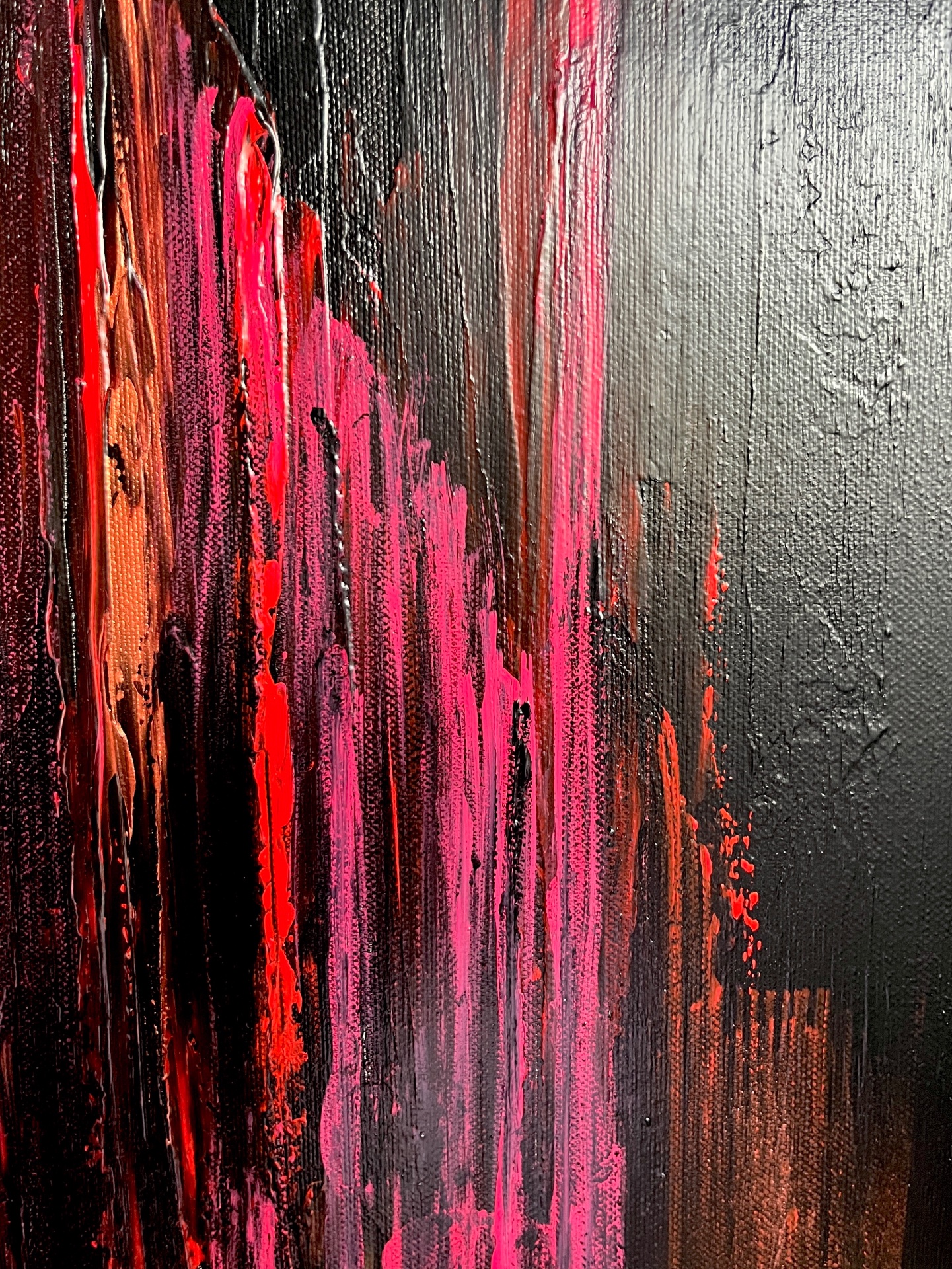The work is sized for a stretcher frame of 60 × 90 cm, with a thickness of 2 cm. It is sold unframed, rolled up in a cardboard tube. The shipment will be insured. To receive the piece already mounted on a stretcher, a personalized quote can be requested by contacting the artist directly.