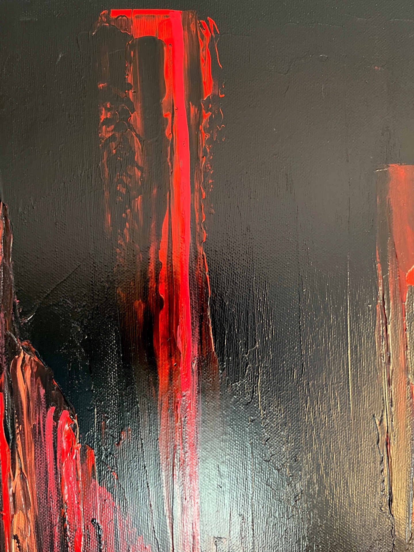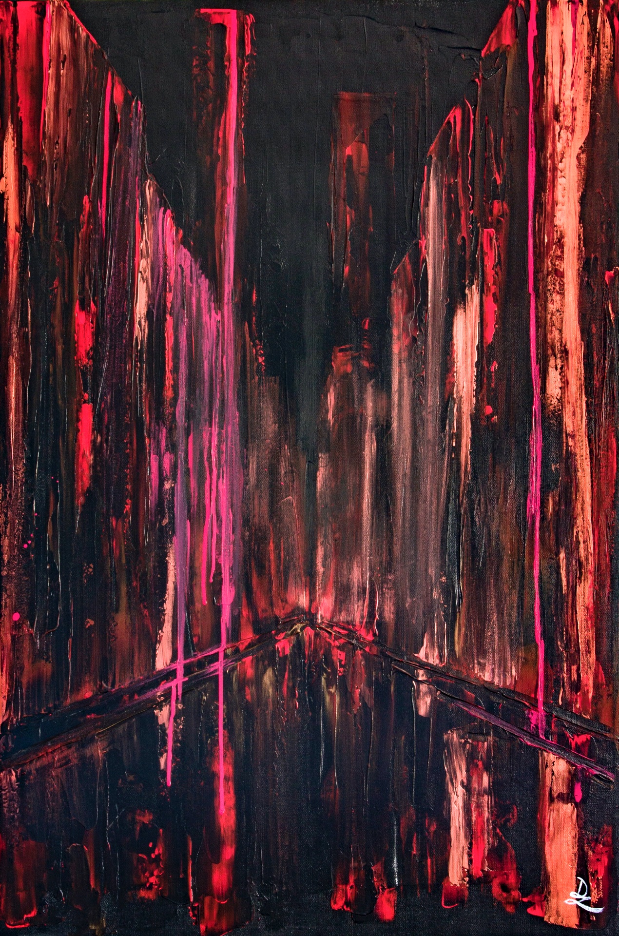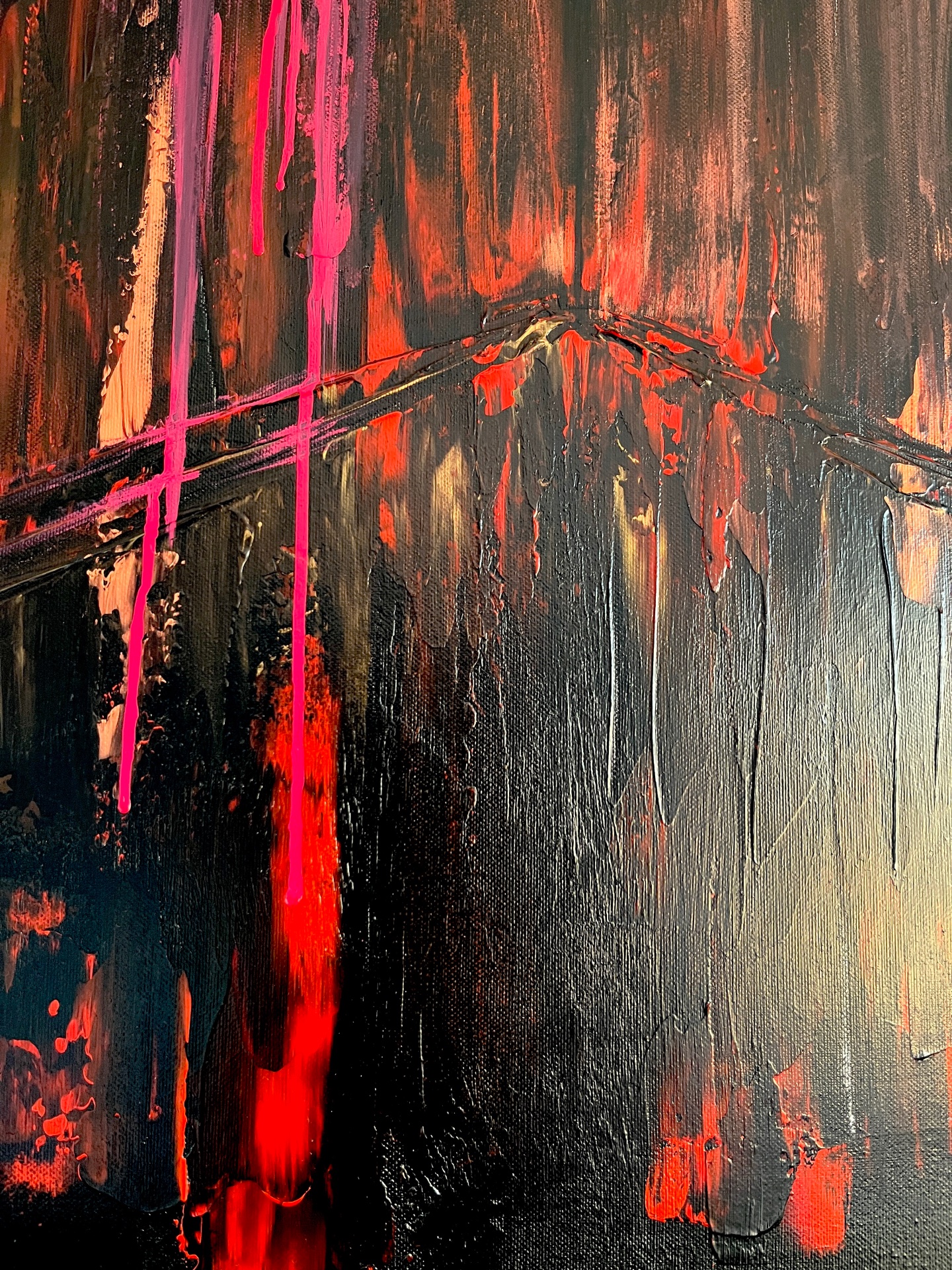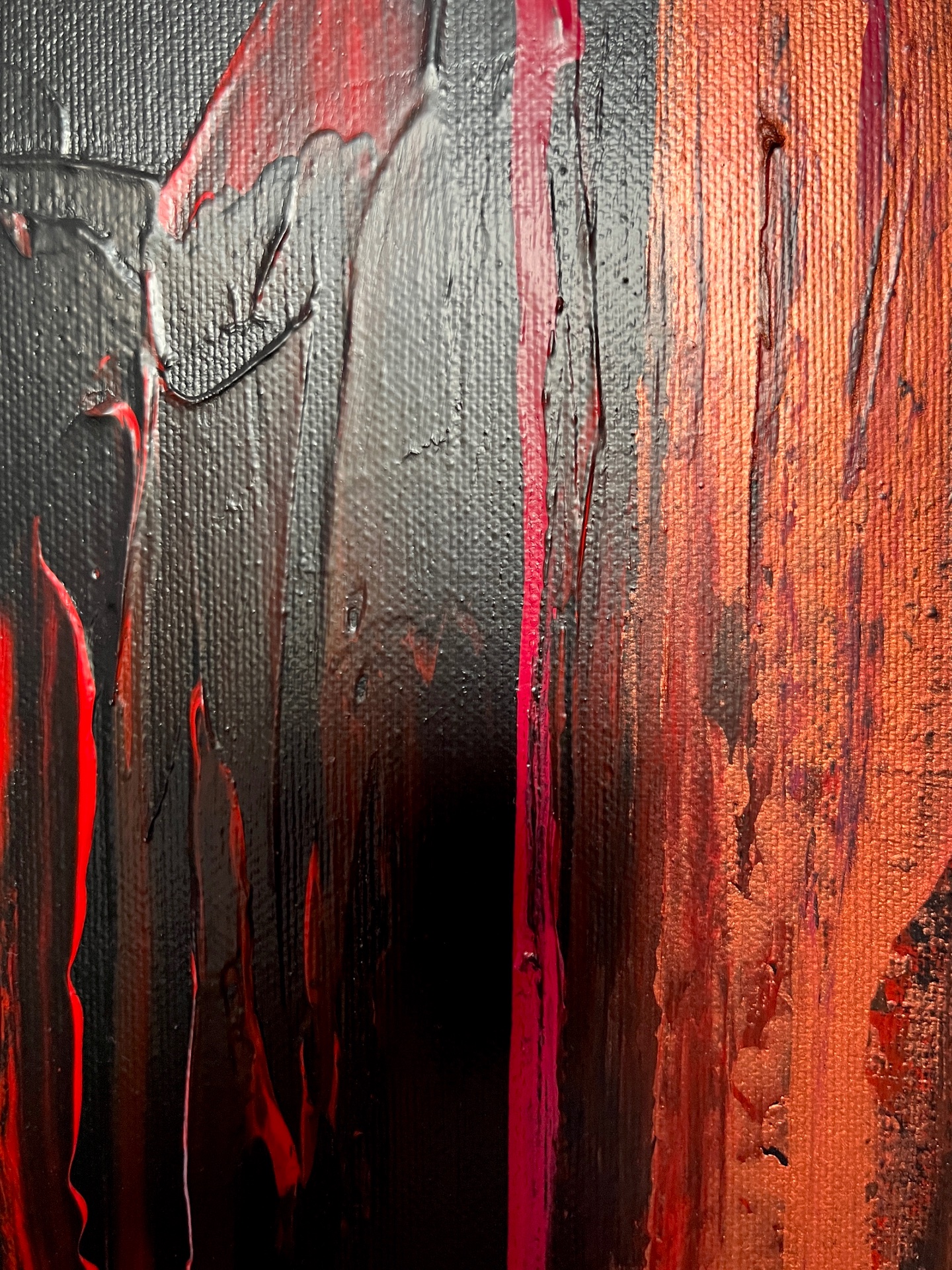 The work is sized for a stretcher frame of 60 × 90 cm, with a thickness of 2 cm. It is sold unframed, rolled up in a cardboard tube. The shipment will be insured. To receive the piece already mounted on a stretcher, a personalized quote can be requested by contacting the artist directly.