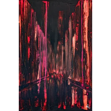 The work is sized for a stretcher frame of 90 × 60 cm, with a thickness of 2 cm. It is sold unframed, rolled up in a cardboard tube. The shipment will be insured. To receive the piece already mounted on a stretcher, a personalized quote can be requested by contacting the artist directly.
