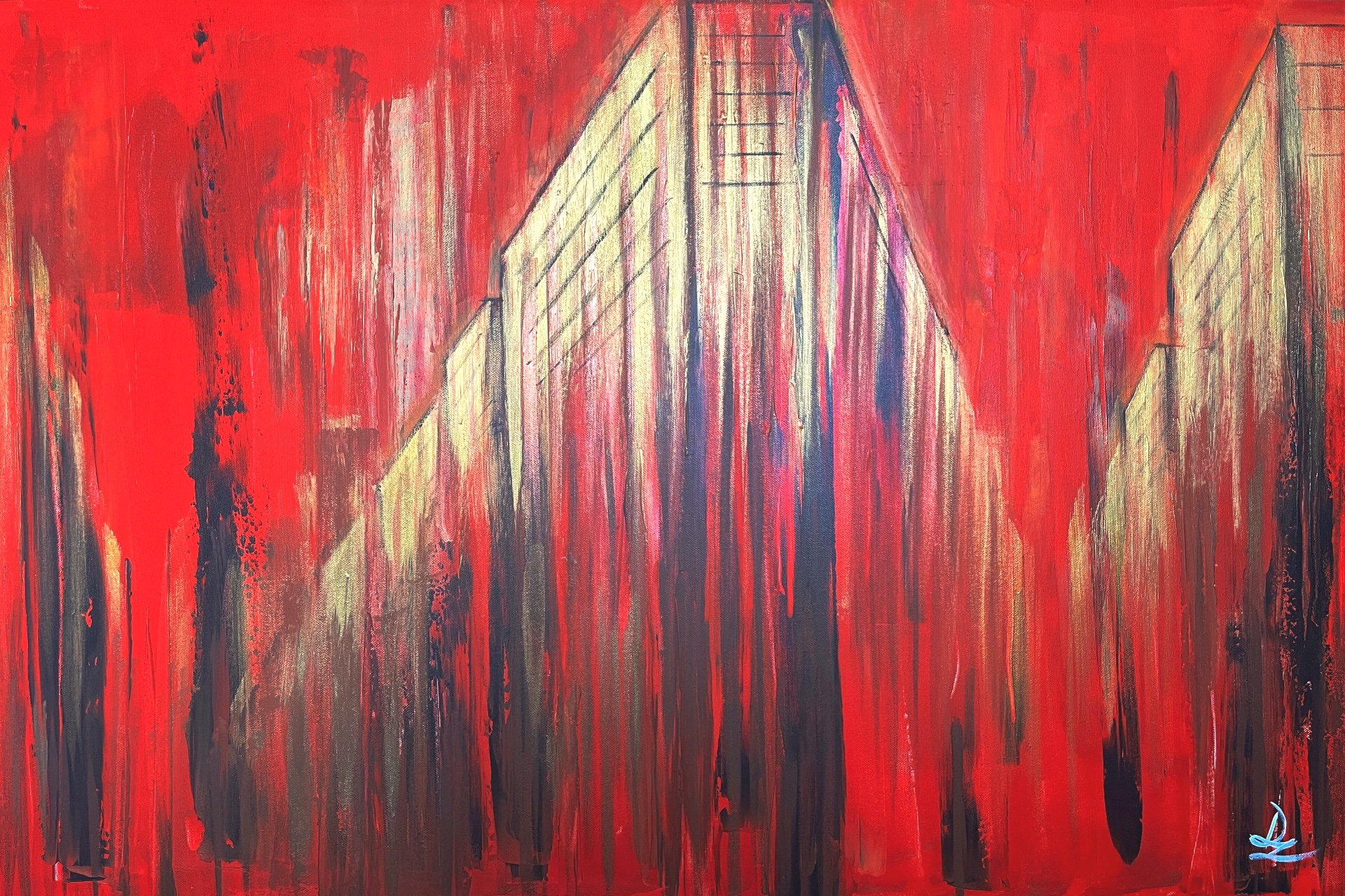 The painting celebrates the magnificence of the metropolis through a landscape suspended between reality and memory. The lines fade, the architecture is only hinted at, and the colors are unreal, just as they appear in dreams. Everything is portrayed to capture a fragment of emotional experience, a distant memory of a city revealed in its most majestic form. A splendor that, in this work, prevails over every other vision.