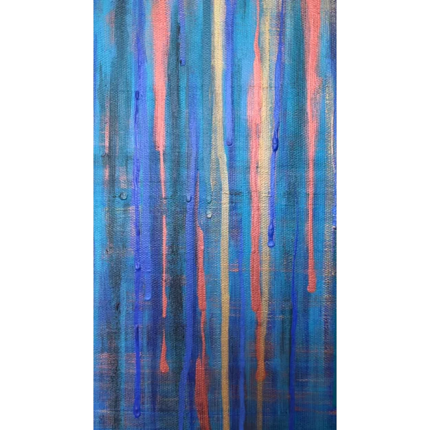 The work is sized for a stretcher frame of 50 × 70 cm, with a thickness of 1.8 cm. It is sold unframed, rolled up in a cardboard tube. To receive the piece already mounted on a stretcher, a personalized quote can be requested by contacting the artist directly.