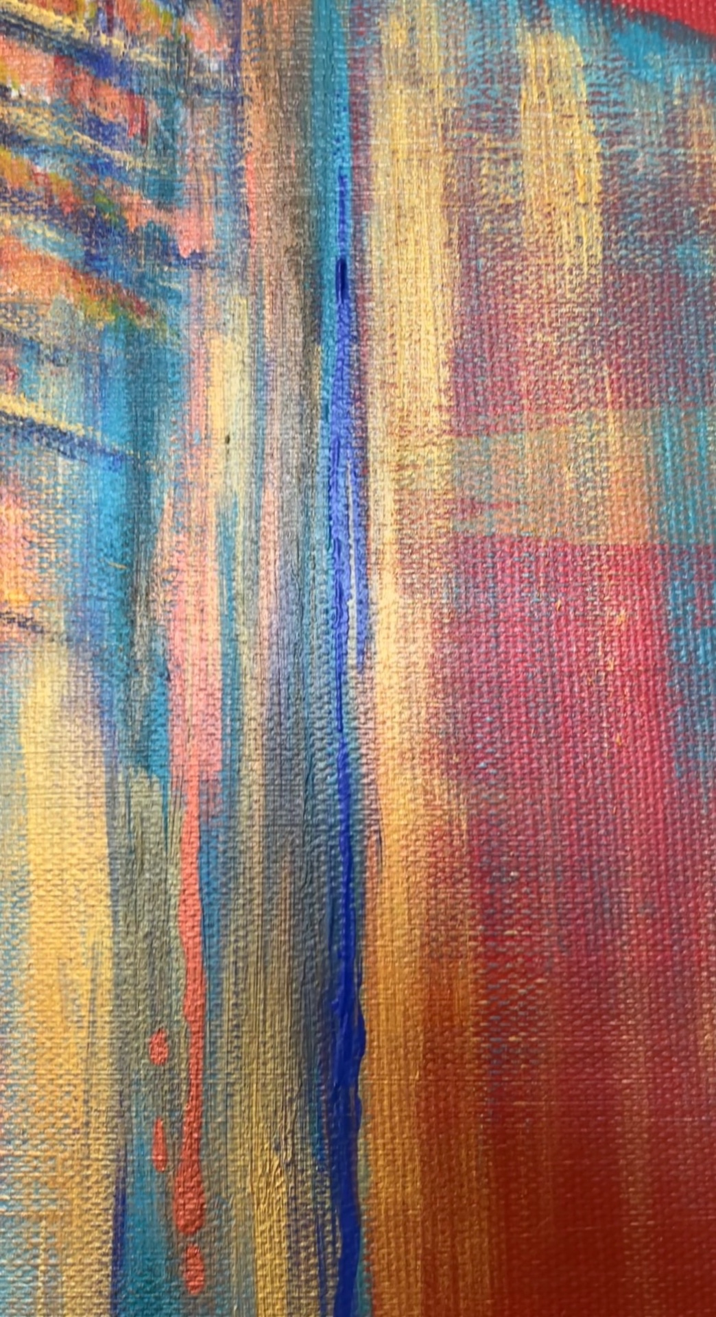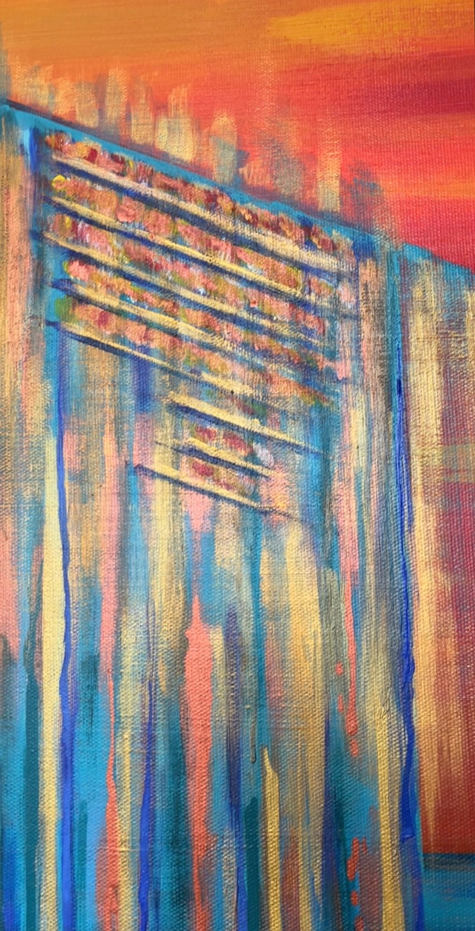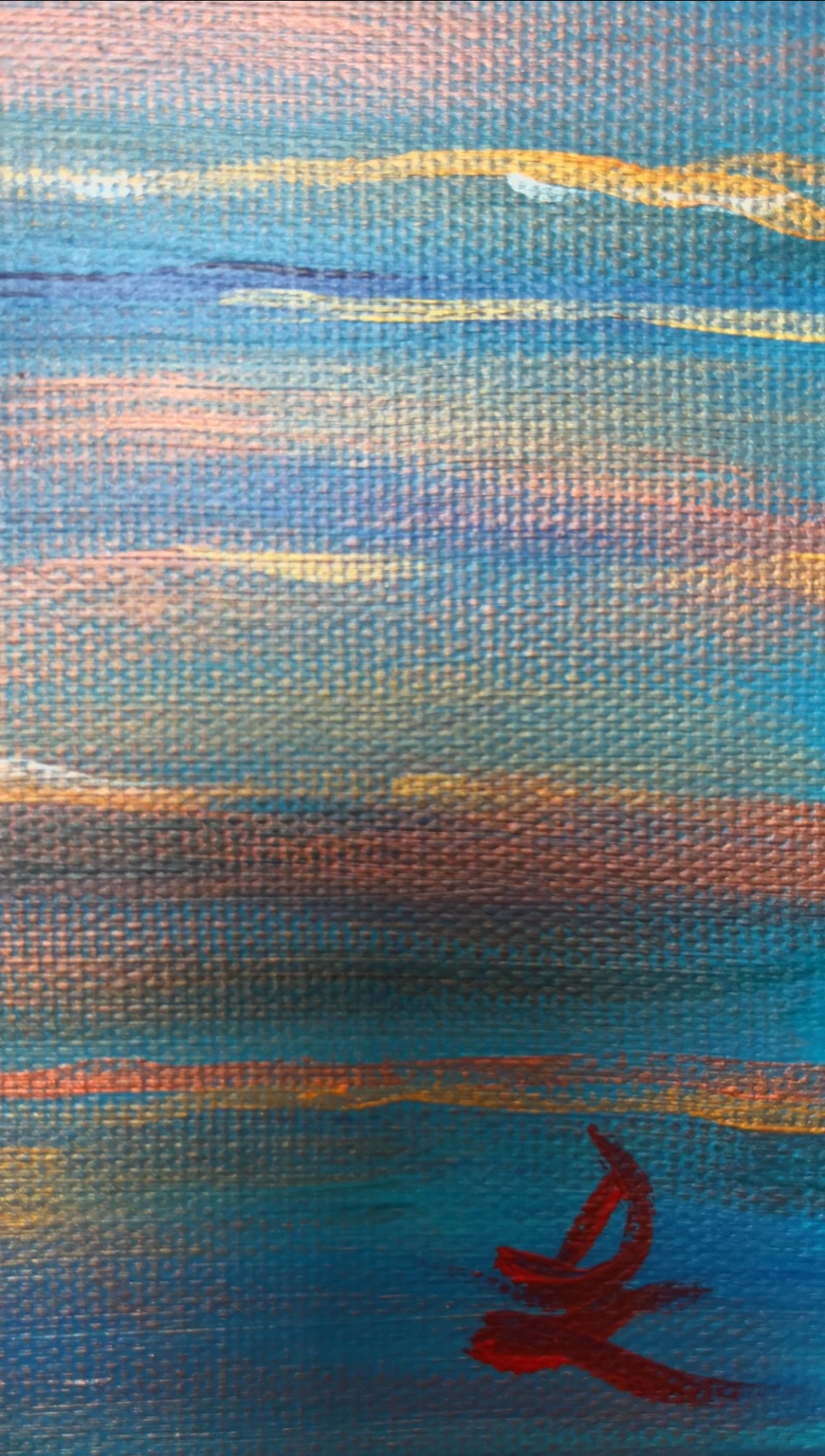 The work is sized for a stretcher frame of 50 × 70 cm, with a thickness of 1.8 cm. It is sold unframed, rolled up in a cardboard tube. To receive the piece already mounted on a stretcher, a personalized quote can be requested by contacting the artist directly.