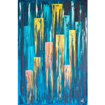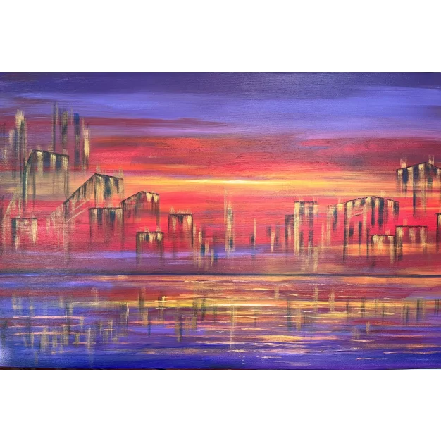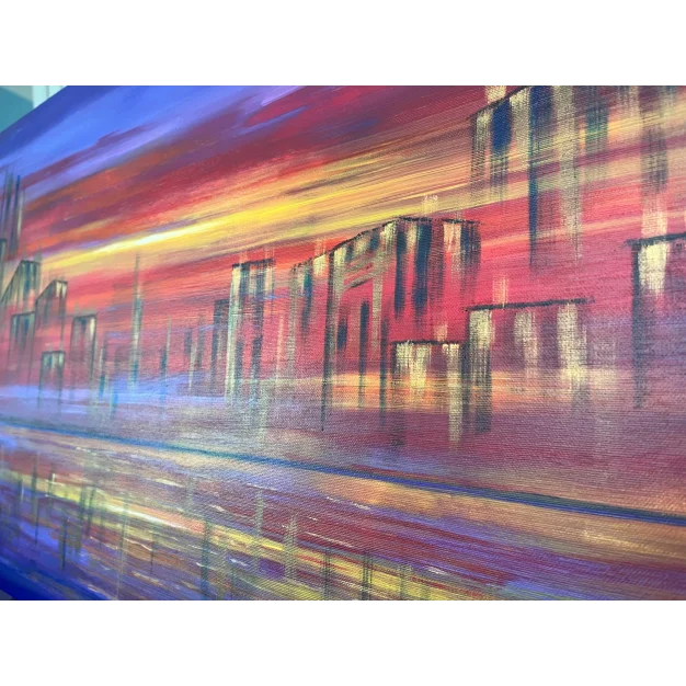 Evanescence captures the moment when the city seems to dissolve between sky and water. It is not just a sunset skyline: it is a suspended place where the remaining golden light transforms every building into a fragment of memory, every reflection into an ephemeral recollection. The artwork invites contemplation of the fragility of things, the delicate boundary between reality and dream, presence and disappearance.