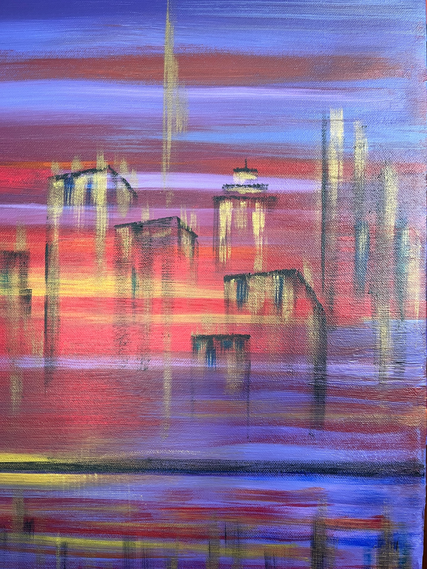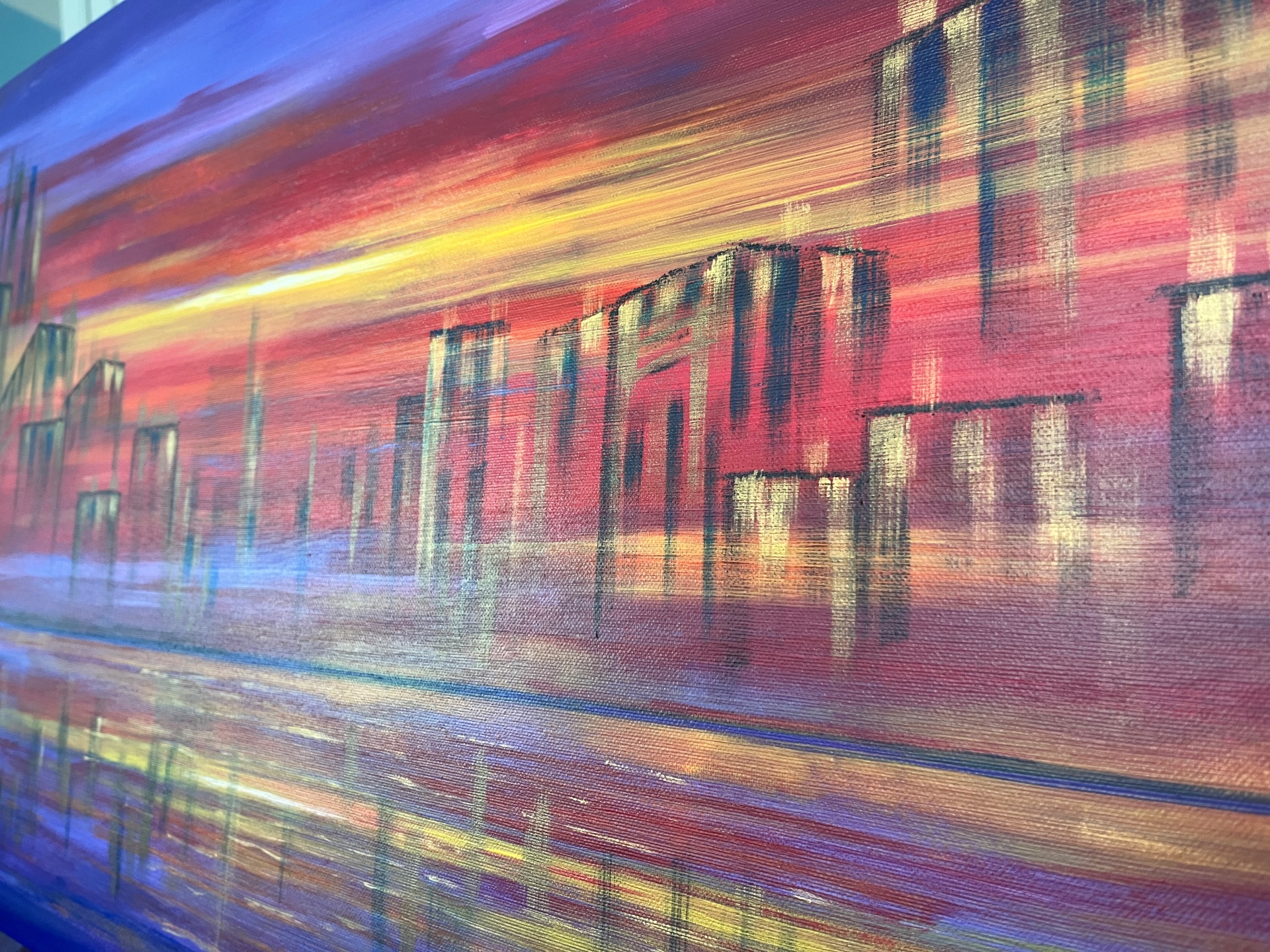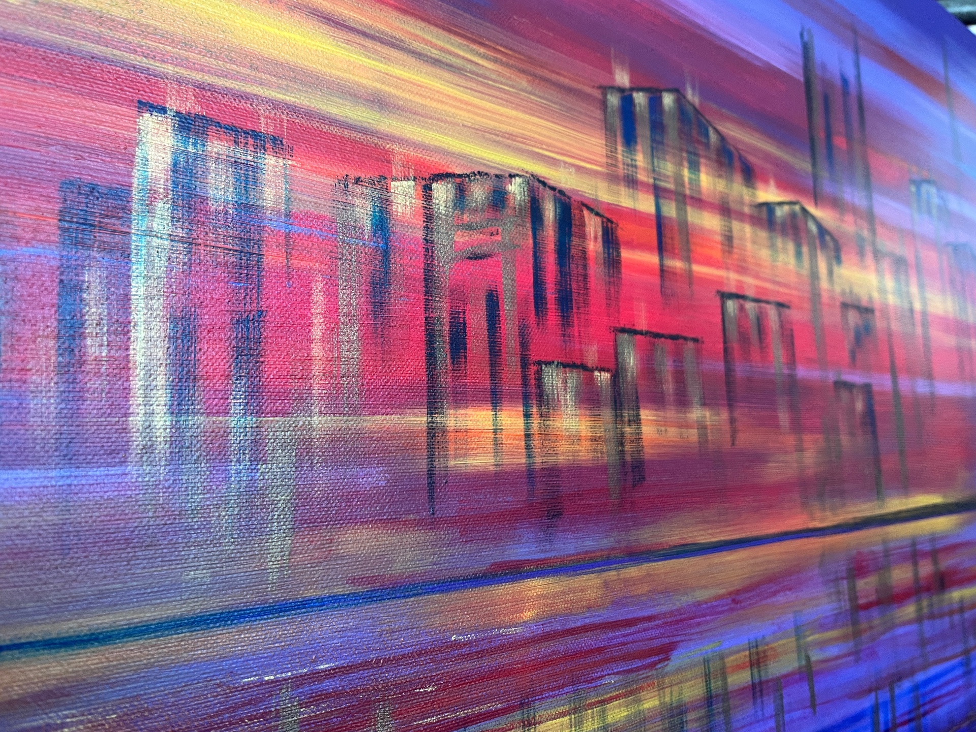 Evanescence captures the moment when the city seems to dissolve between sky and water. It is not just a sunset skyline: it is a suspended place where the remaining golden light transforms every building into a fragment of memory, every reflection into an ephemeral recollection. The artwork invites contemplation of the fragility of things, the delicate boundary between reality and dream, presence and disappearance.