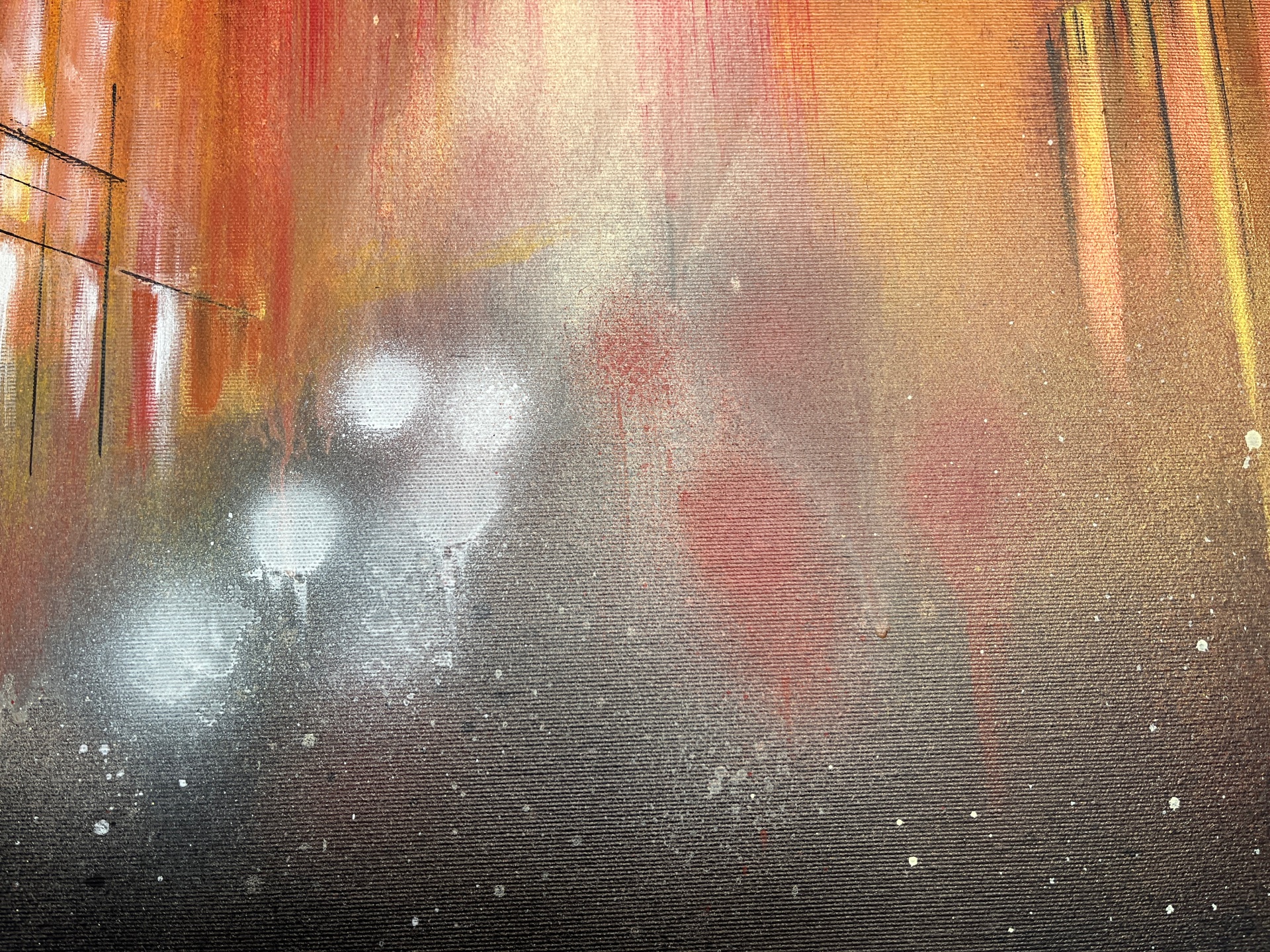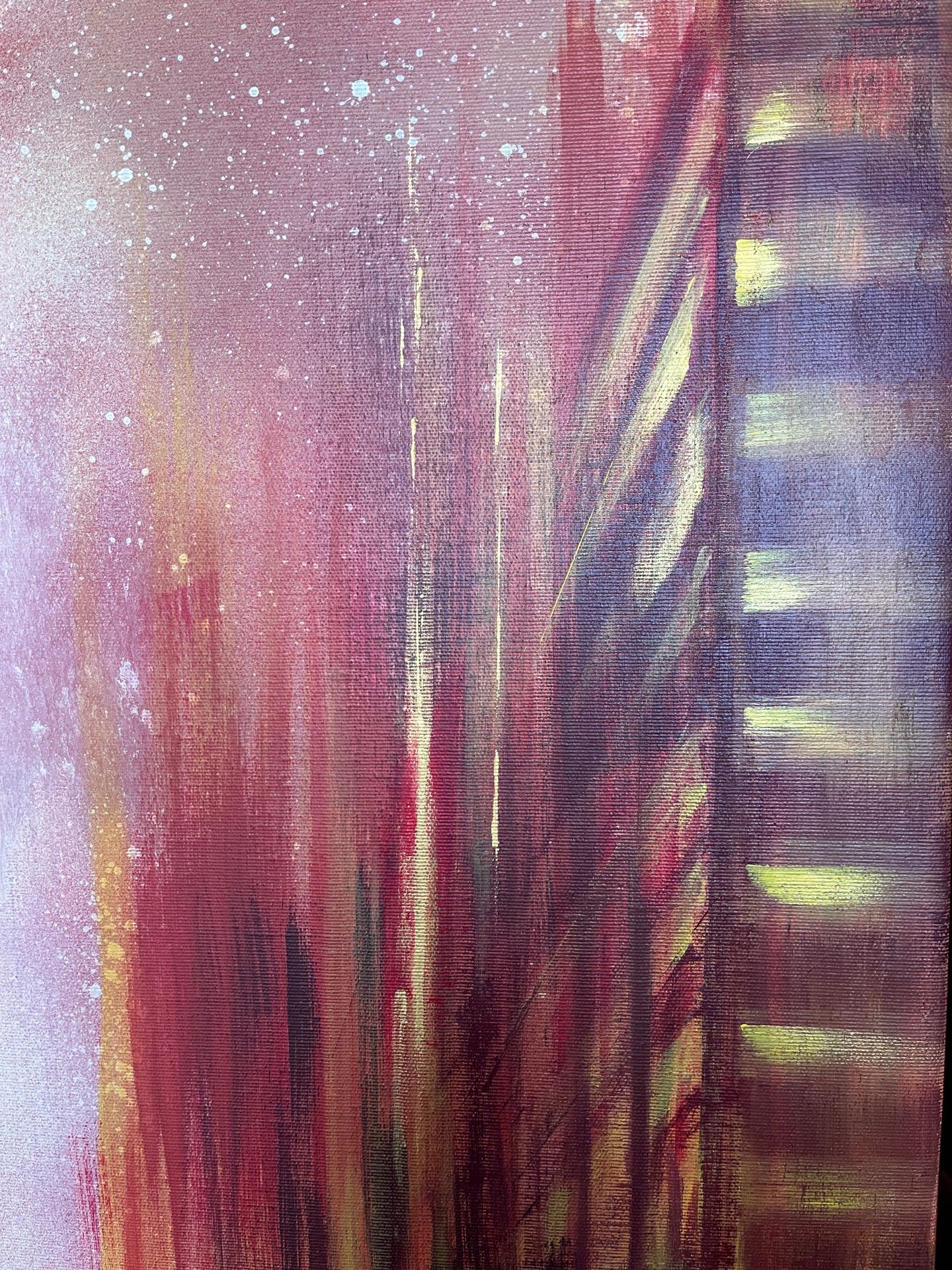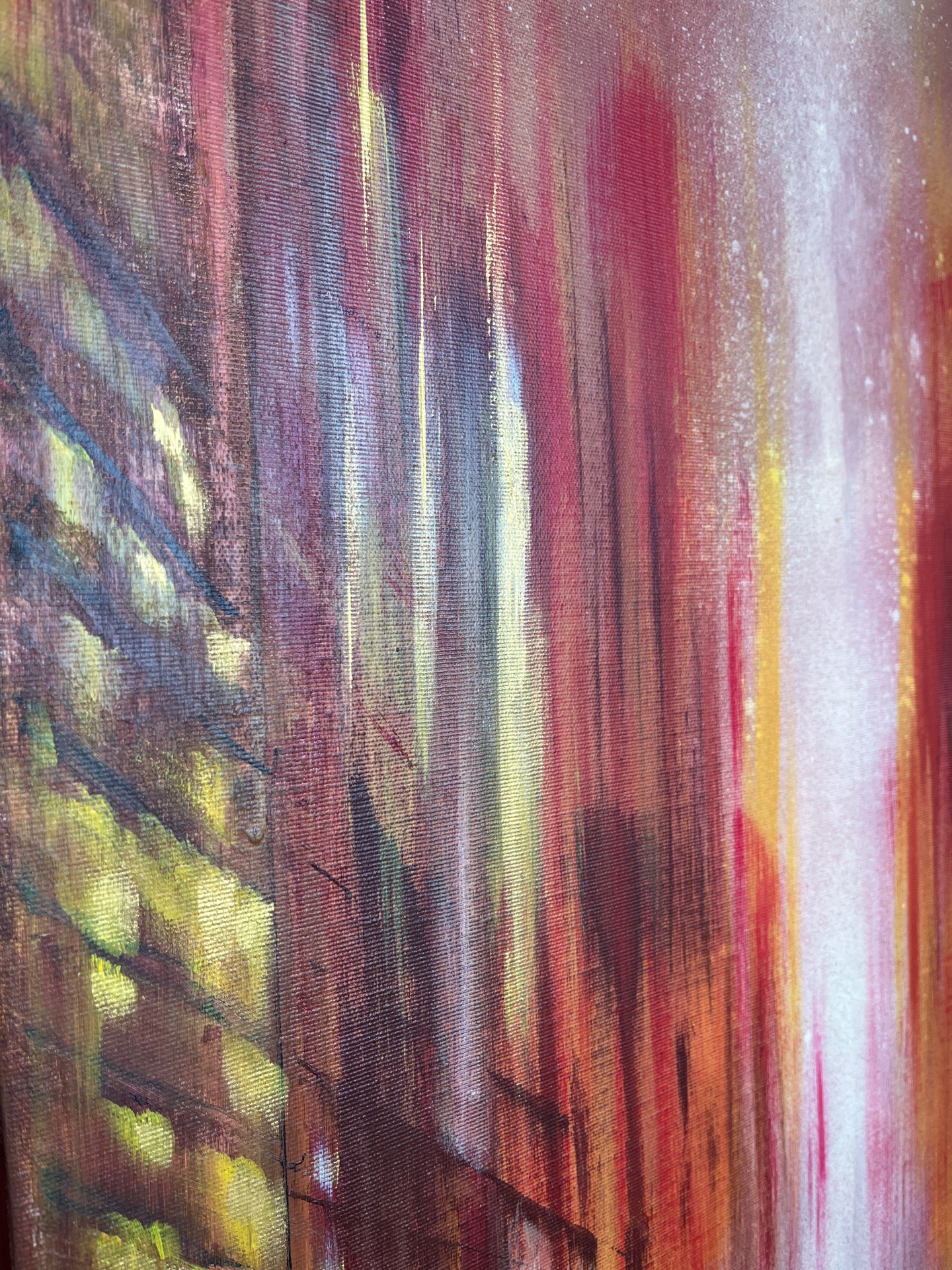 The work represents an urban glimpse during the golden hour, a time when the golden light of sunset bathes everything in warm hues. It is a moment of transition, the boundary between day and night, between activity and stillness. The world seems to have stopped in the midst of the daily life’s movement. The atmosphere is soft and enveloped in a sense of suspended calm, surreal, as if an instant from a dream had been captured. Here and now, it is possible to pause, slow down, and observe reality with new eyes.