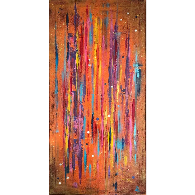 The work is sized for a stretcher frame of 50 × 100 cm, with a thickness of 2 cm. It is sold unframed, rolled up in a cardboard tube. To receive the piece already mounted on a stretcher, a personalized quote can be requested by contacting the artist directly.