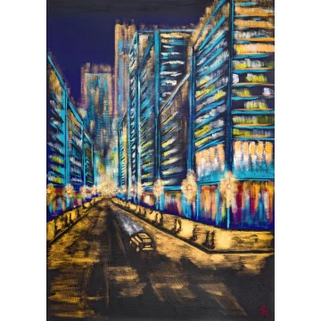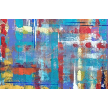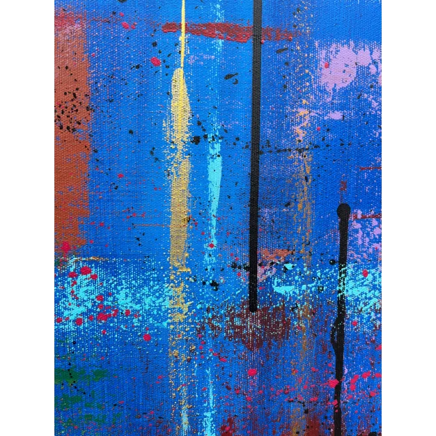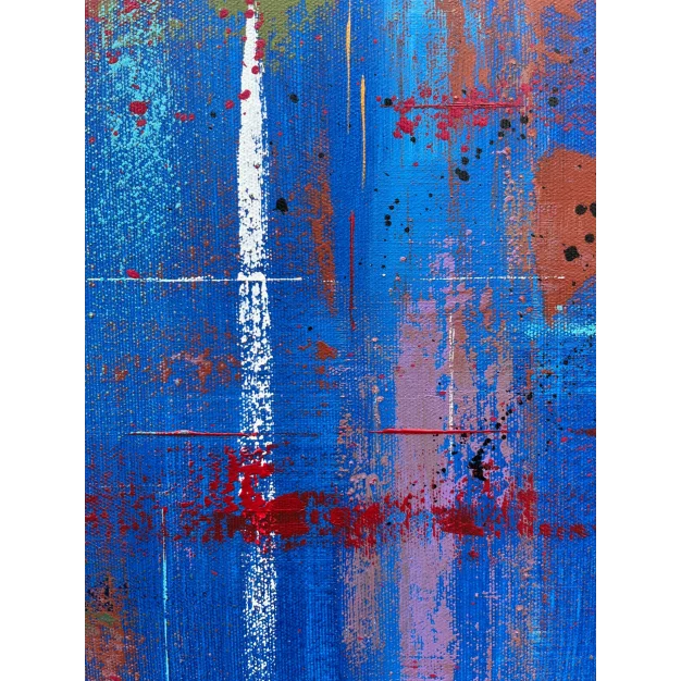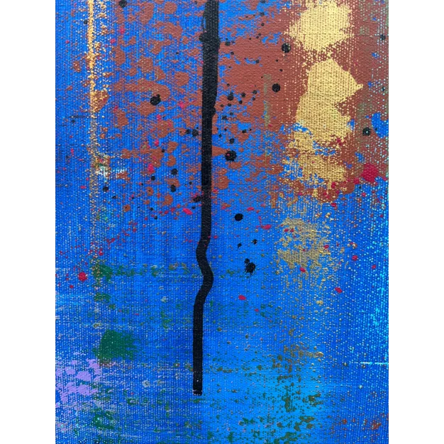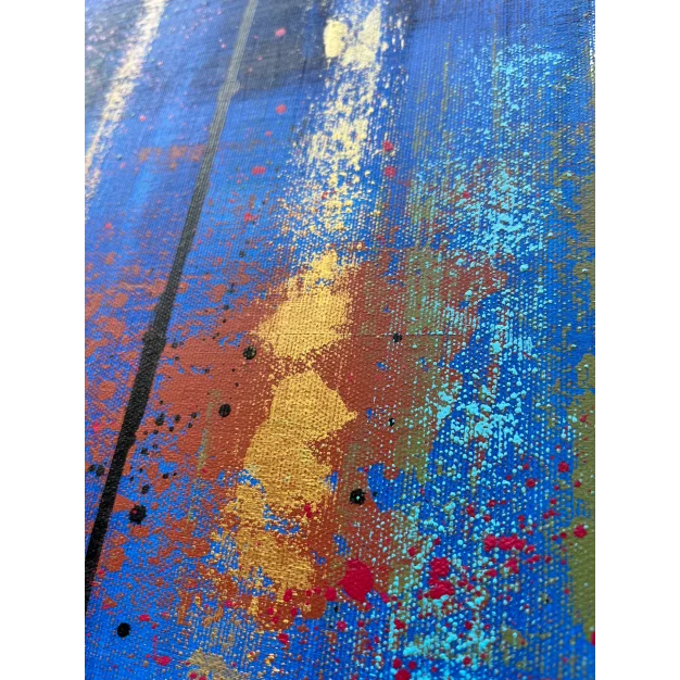 The work is sized for a stretcher frame of 85 × 85 cm, with a thickness of 2 cm. It is sold unframed, rolled up in a cardboard tube. To receive the piece already mounted on a stretcher, a personalized quote can be requested by contacting the artist directly.