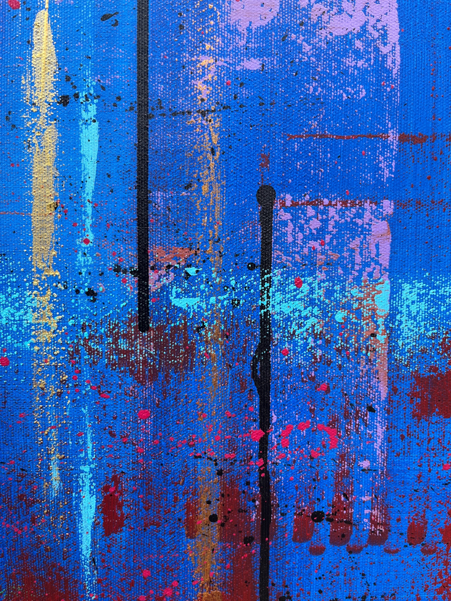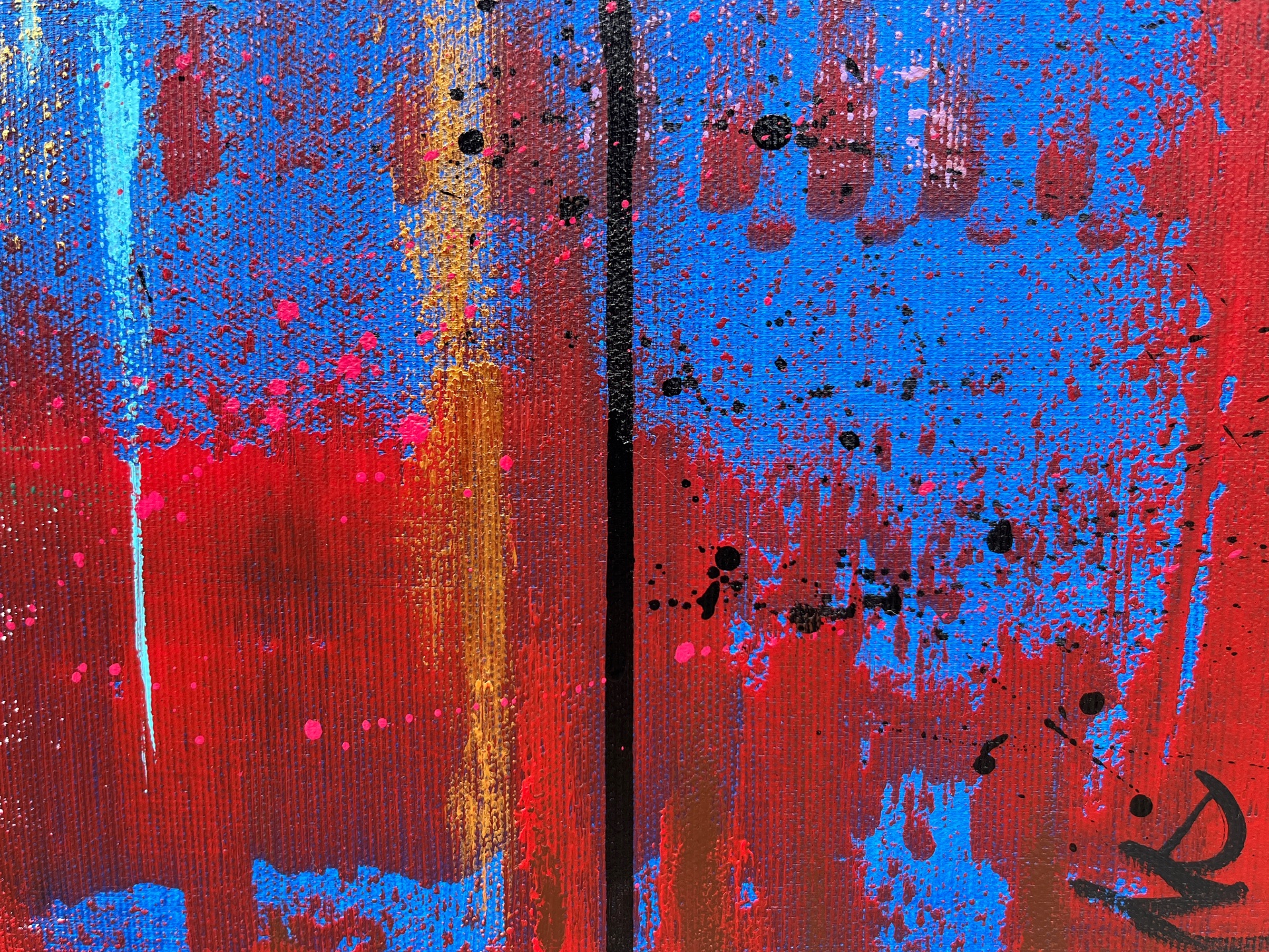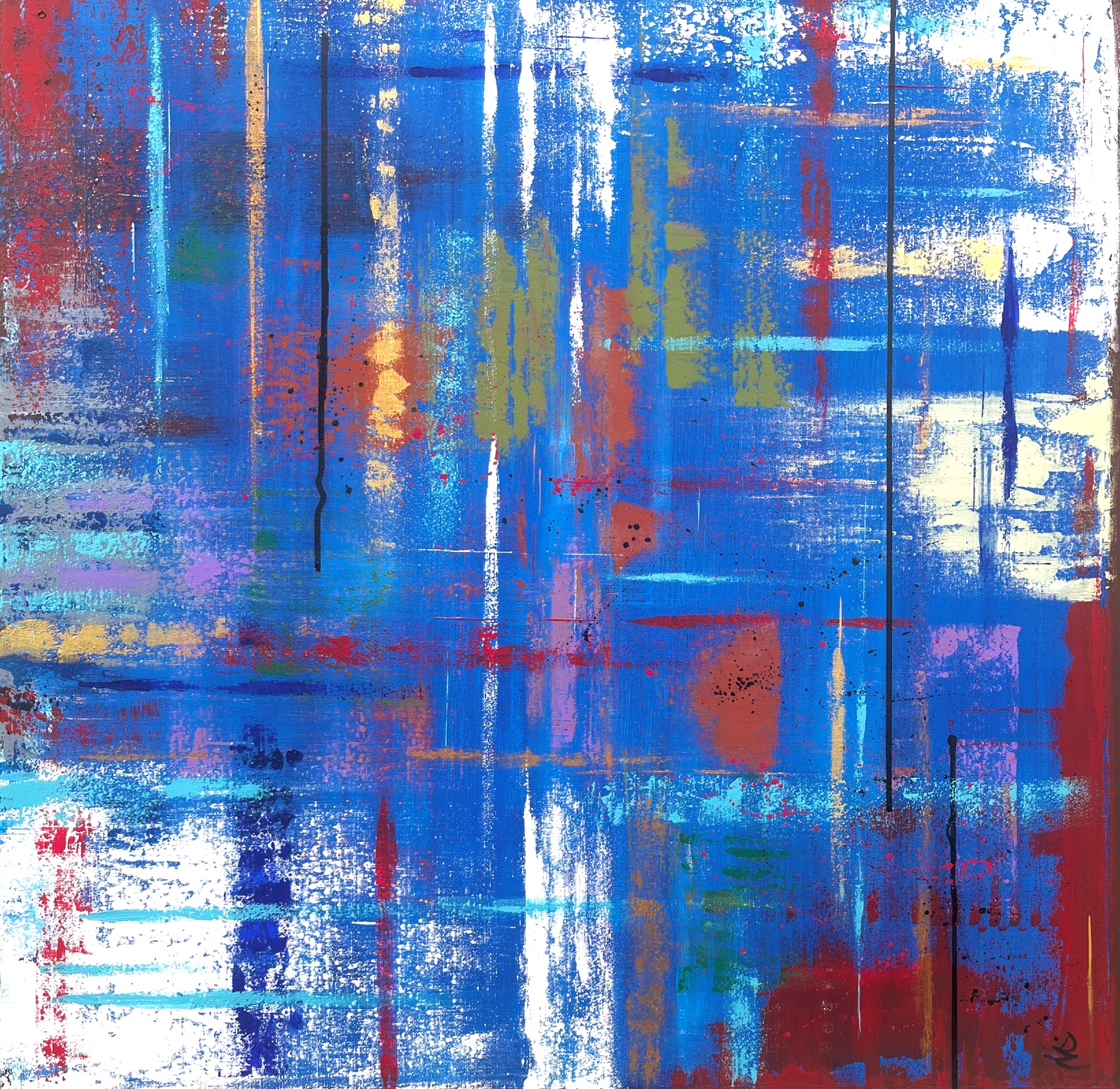 The work is sized for a stretcher frame of 85 × 85 cm, with a thickness of 2 cm. It is sold unframed, rolled up in a cardboard tube. To receive the piece already mounted on a stretcher, a personalized quote can be requested by contacting the artist directly.