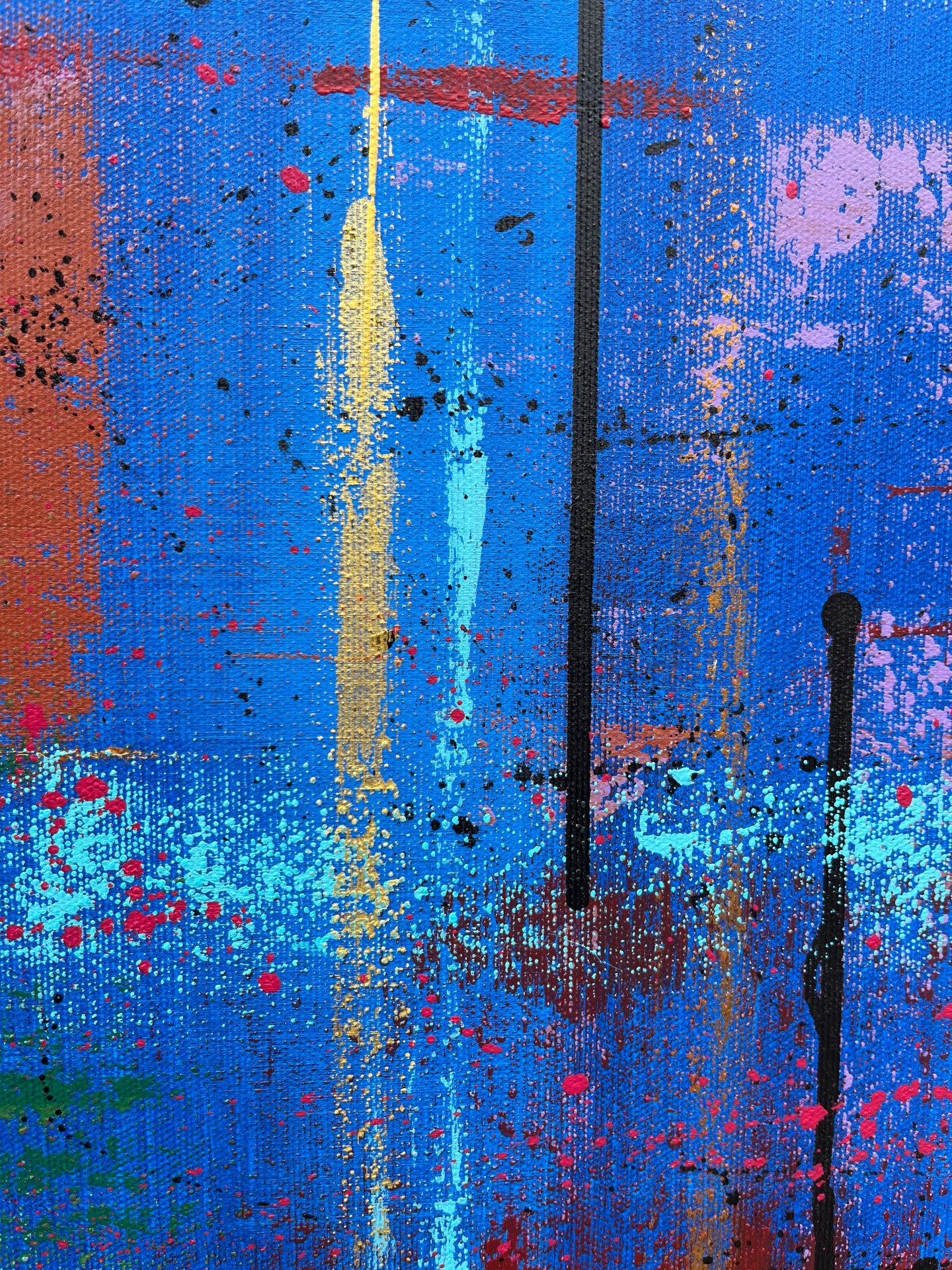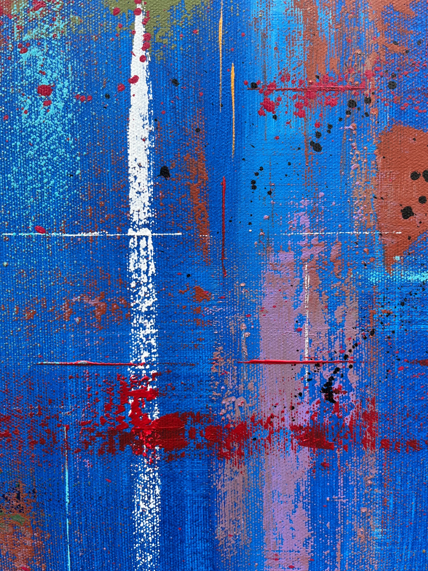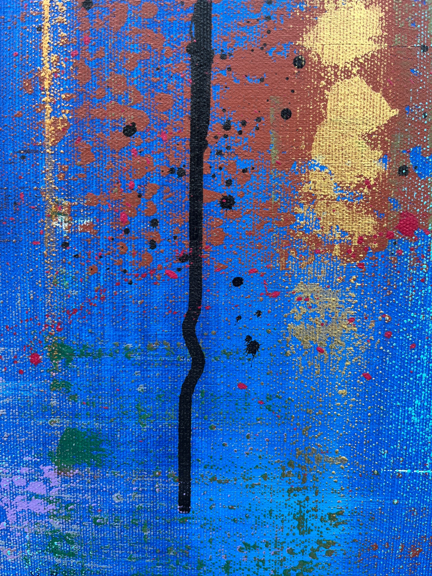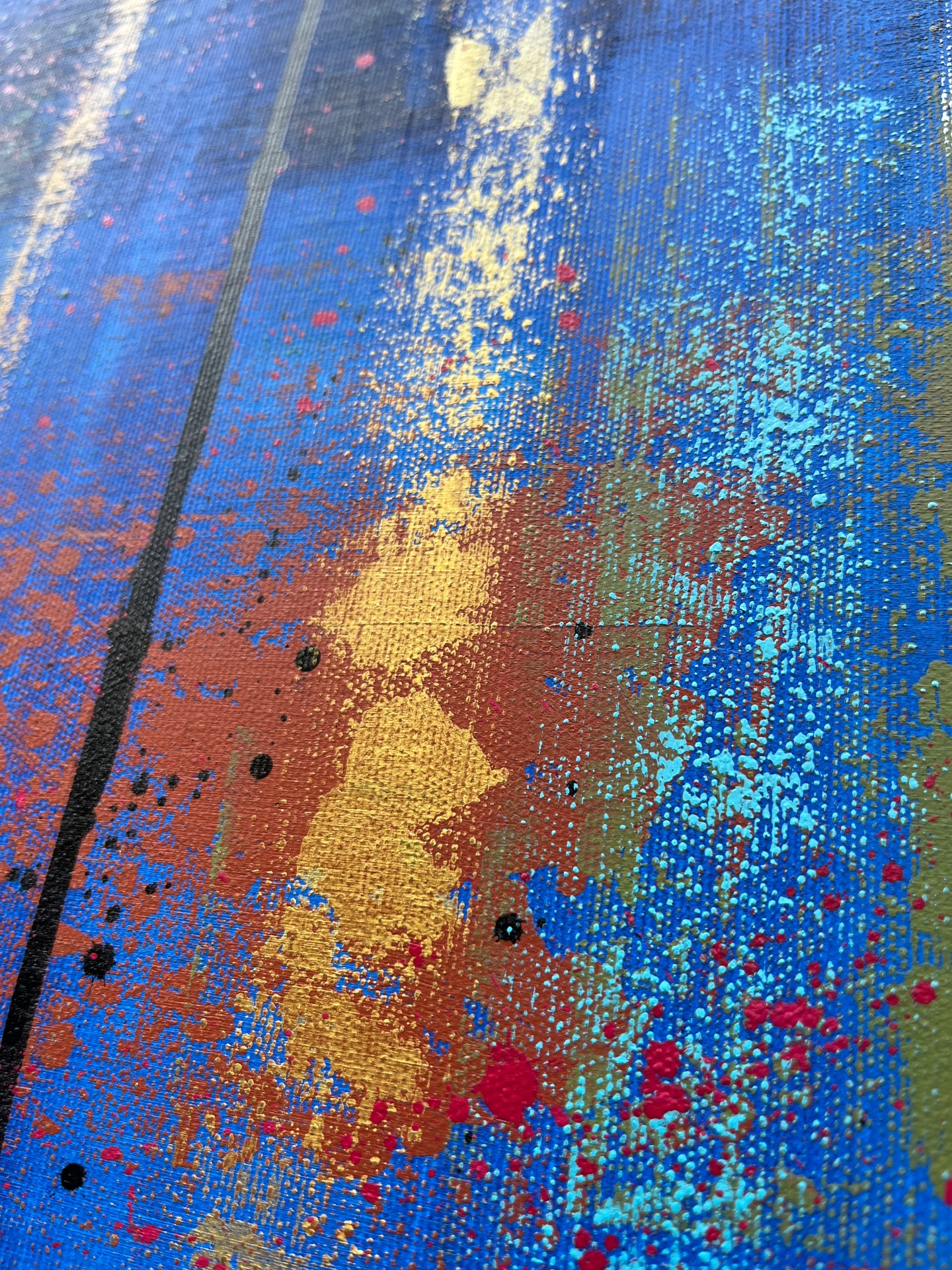 The work is sized for a stretcher frame of 85 × 85 cm, with a thickness of 2 cm. It is sold unframed, rolled up in a cardboard tube. To receive the piece already mounted on a stretcher, a personalized quote can be requested by contacting the artist directly.